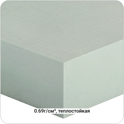 Полиуретановая модельная плита средней плотности с теплостойкостью до 90°С, для изготовления, мастер-моделей, шаблонов, оснасток для вакуумной формовки, и формования препрега; плотность 0,69 г/см3 . Обладает хорошей обрабатываемостью и низким образованием пыли, имеет поверхность высокого качества, хорошо поддающуюся герметизации и лакированию.