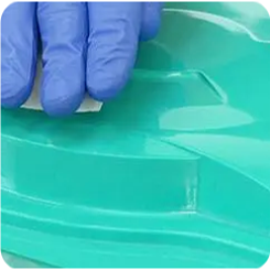 Полупостоянный разделительный состав для создания антиадгезионного покрытия на поверхности оснасток и пресс-форм. Образующаяся пленка обладает высокими антиадгезионными свойствами. Можно применять для получения изделий на основе эпоксид ных, полиэфирных, винил-эфирных и других термореактивных смол. Обладает слабым запахом и легко наносится, не оставляя следов на поверхности пресс-формы. Обеспечивает легкое снятие изделий, а также позволяет многократно производить съем продукции после одного применения состава. Подходит для формования препрегов с температурами отверждения до 200°C Разделительный состав производится на основе полимерной смолы в смеси органических растворителей.
