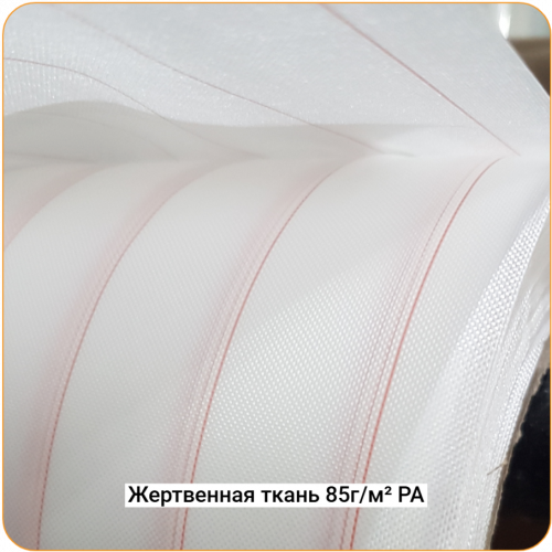 Полиамидная жертвенная ткань с красной маркирующей нитью для большей заметности на поверхности детали. Жертвенная ткань предназначена для использования в процессах вакуумной инфузии и контактного формования с использованием полиэфирных, винилэфирных и эпоксидных связующих. Так же возможно применение для других технологических процессов с максимальной температурой отверждения не выше плюс 210°С. Не рекомендуется применять полиамидные разделительные ткани с фенольными связующими.